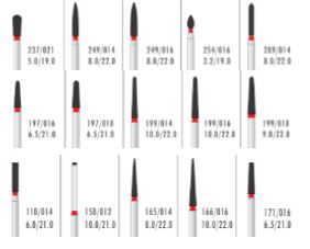 ●Serie RS Roja, fina (53-63u). Fresa ideal para marcar hombro redondeado para la terminacion de chaflan ideal para protesis de metal, metal porcelana y libres de metal.